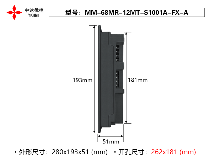 | Tên sản phẩm | Màn hình 10 inch YKHMI MM-68MR-12MT-S1001A-FX-A |