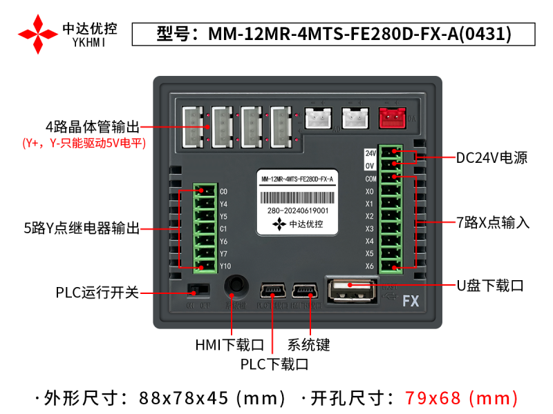 | Tên sản phẩm | Màn hình 2.8 inch YKHMI MM-12MR-4MTS-FE280D-FX-A(0431) |