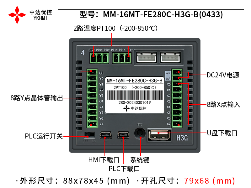 Màn hình 2.8 inch YKHMI MM-16MT-FE280C-H3G-B(0433) – Tối ưu hiệu suất, vận hành ổn định cho hệ thống công nghiệp