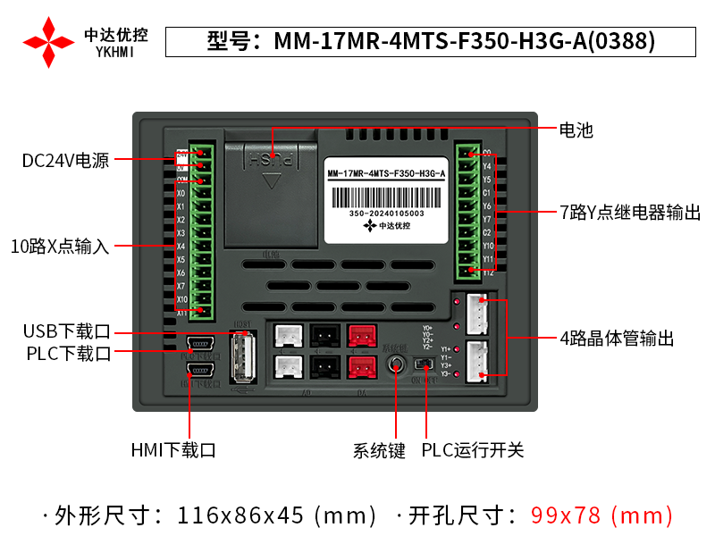 Màn hình 3.5 inch YKHMI MM-17MR-4MTS-F350-H3G-A