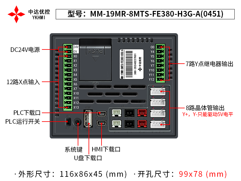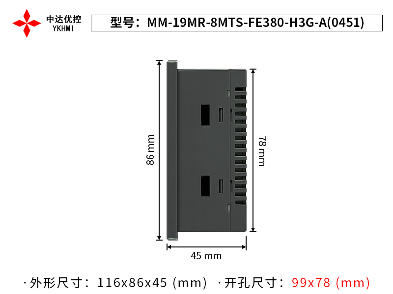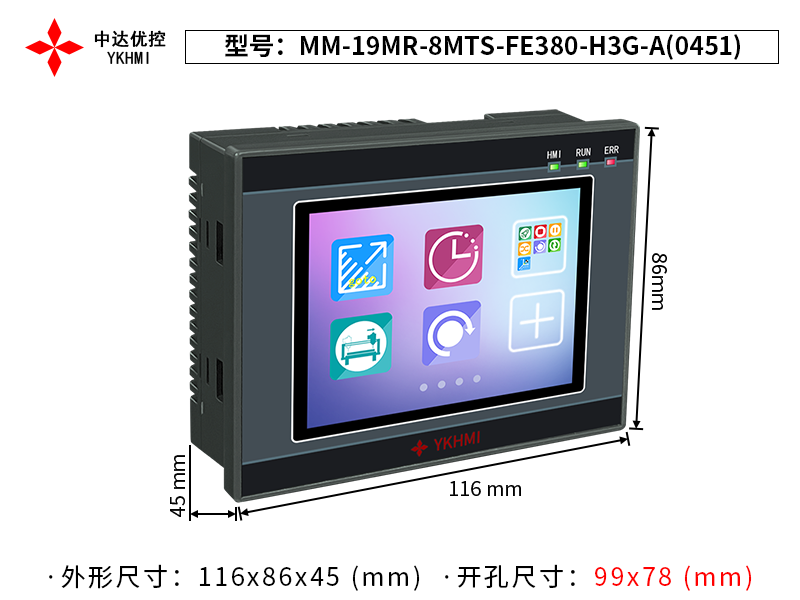 Màn hình 3.5 inch YKHMI MM-19MR-8MTS-FE380-H3G-A(0451) – Tối ưu hiệu suất, vận hành ổn định cho hệ thống công nghiệp
