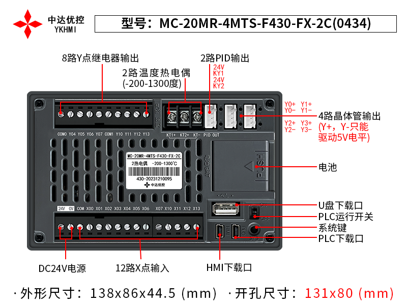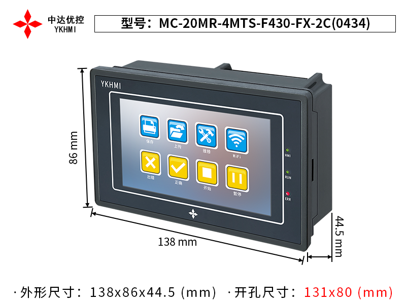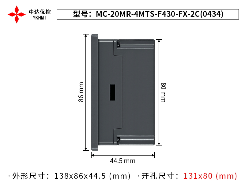 | Tên sản phẩm | Màn hình 4.3 inch YKHMI MC-20MR-4MTS-F430-FX-2C(0434) |