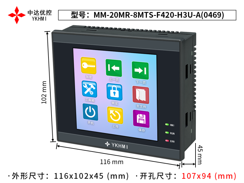 Màn hình 4 inch YKHMI MM-20MR-8MTS-F420-H3U-A(0469) – Tối ưu hiệu suất, vận hành ổn định cho hệ thống công nghiệp