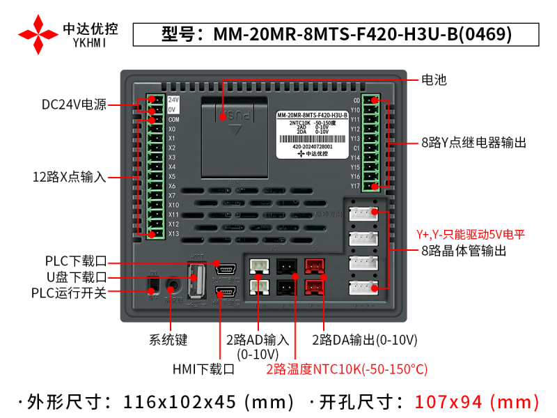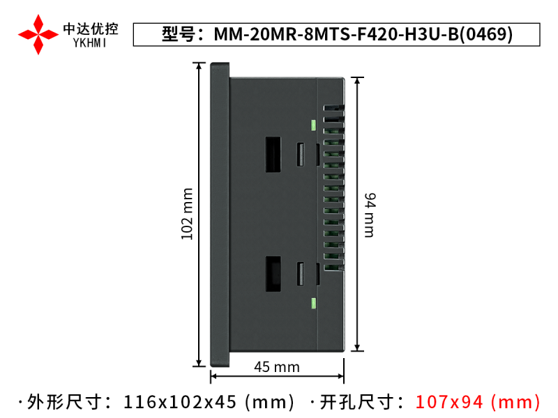 | Tên sản phẩm | Màn hình 4 inch YKHMI MM-20MR-8MTS-F420-H3U-B(0469) |