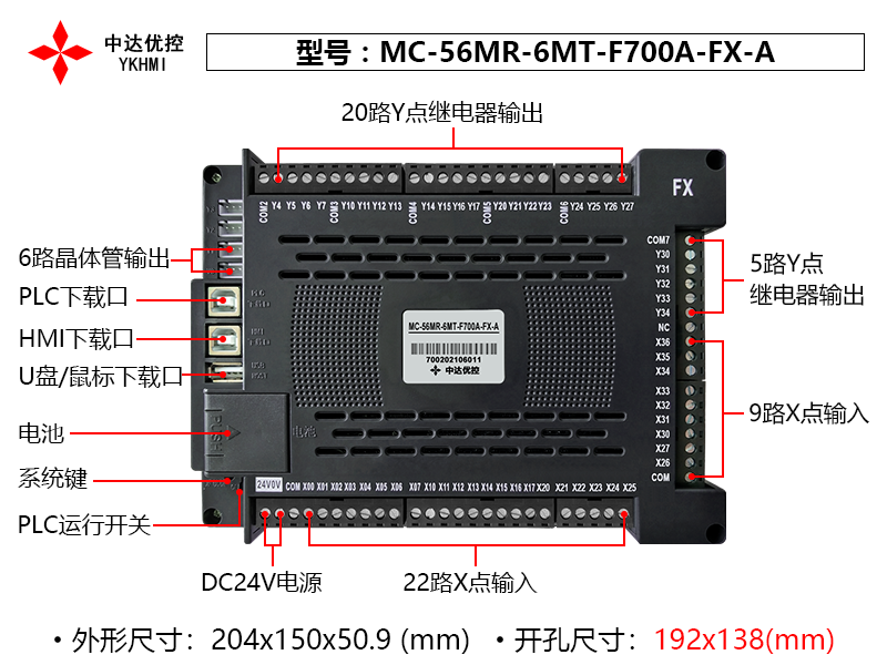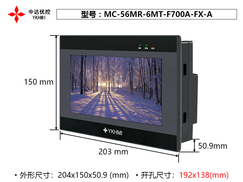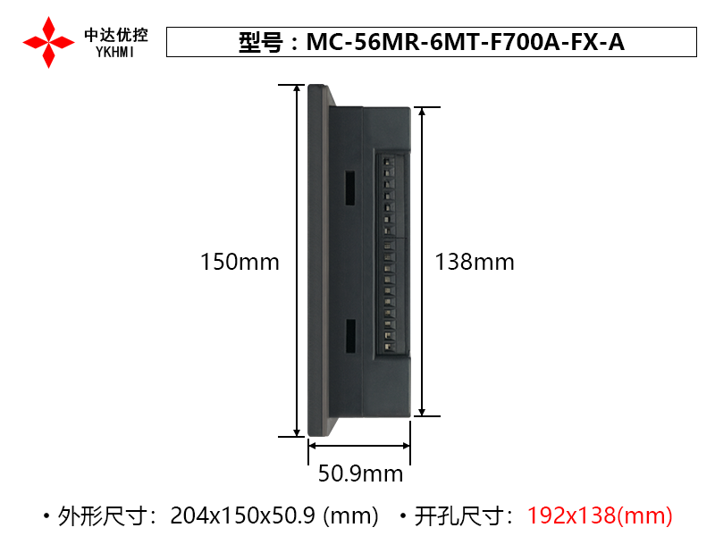 | Tên sản phẩm | Màn hình cảm ứng HMI PLC 7 inch MC-56MR-6MT-F700A-FX-A / chính hãng YKHMI |
