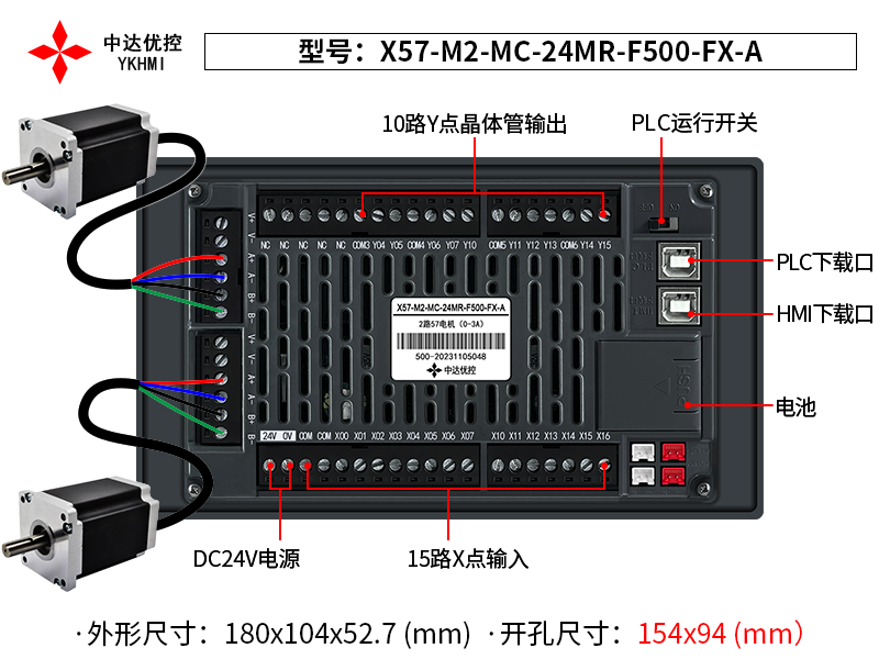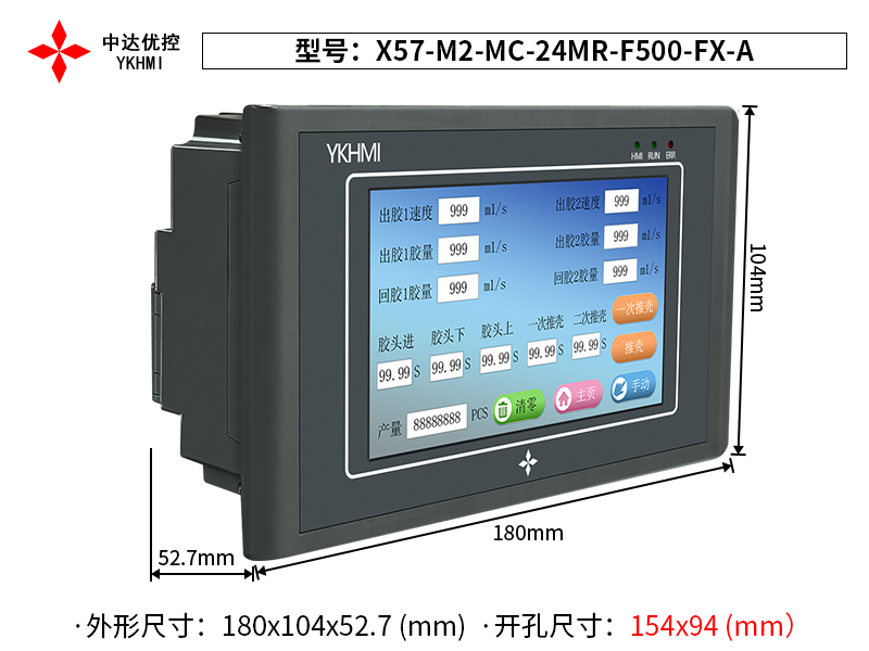 | Tên sản phẩm | Màn hình cảm ứng YKHMI X57-M2-MC-24MR-F500-FX-A |