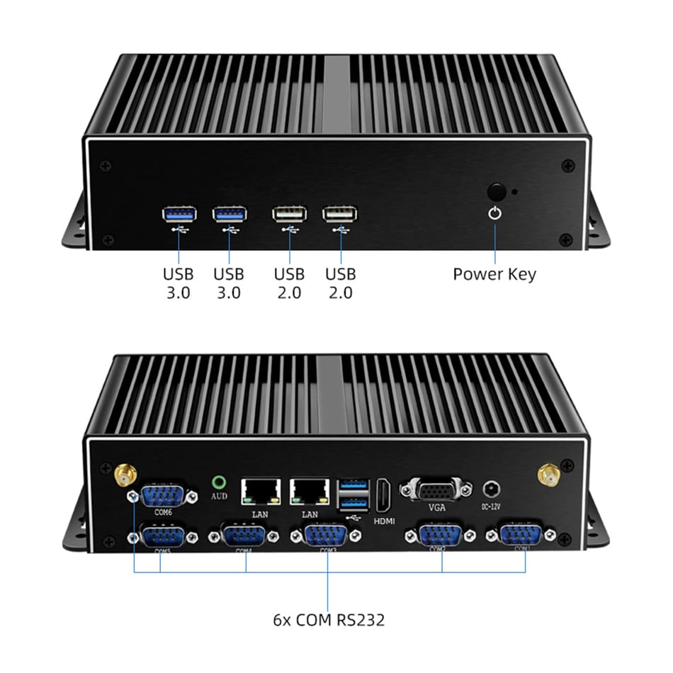 Máy tính công nghiệp không Quạt Mini PC 6x Com RS232 2.5g Ethernet Intel i3 I7 i7 thế hệ thứ 4/5 CPU Wifi 4G LTE khe cắm Sim Windows Linux