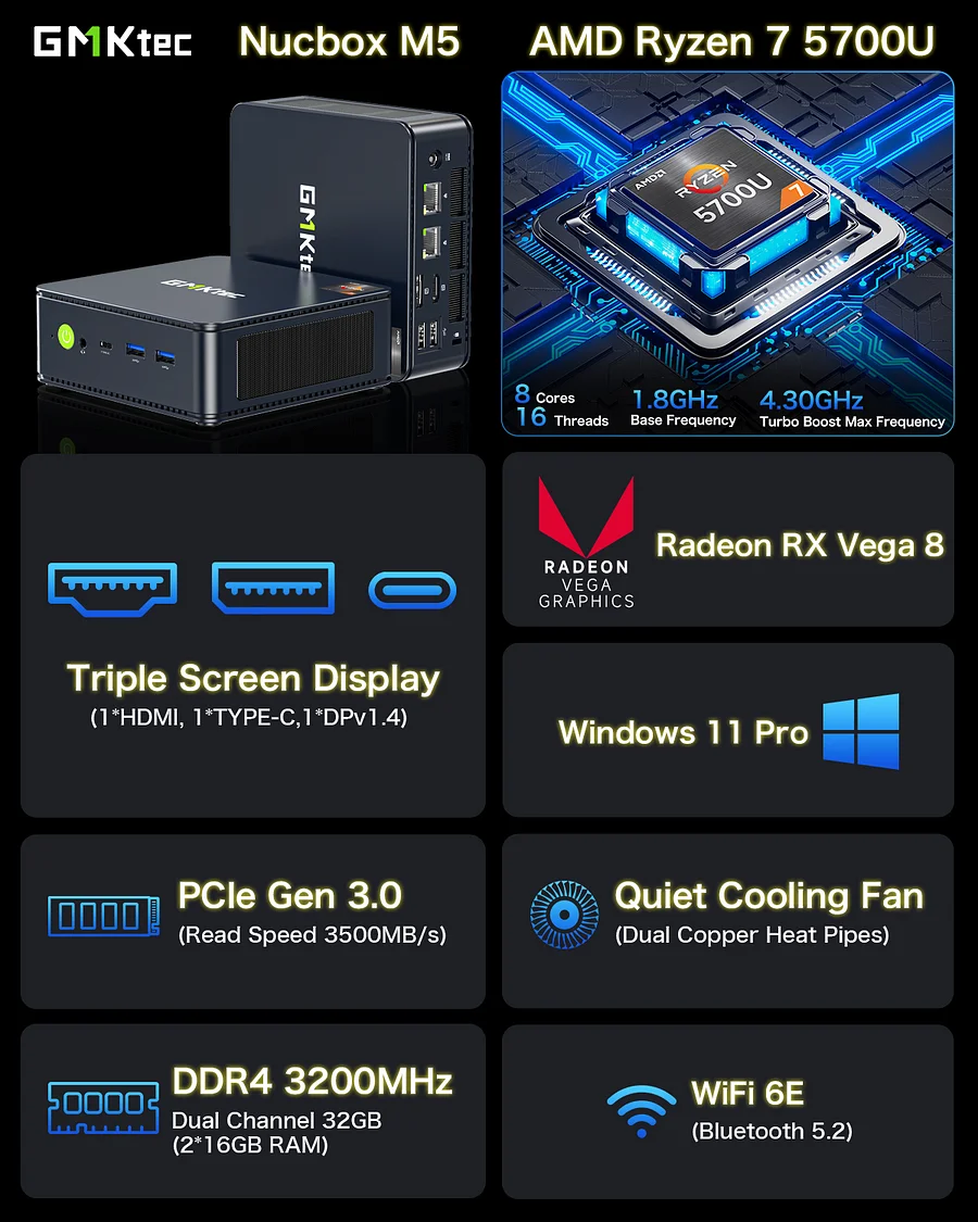 Máy tính mini AMD Ryzen 7 5700U–NucBox M5 là giải pháp phù hợp cho doanh nghiệp cần thiết bị bền bỉ, dễ triển khai và đảm bảo độ tin cậy trong quá trình vận hành. Nếu anh/chị đang cần nâng cấp hệ thống để giảm lỗi dừng máy và tăng năng suất, đây là lựa chọn đáng cân nhắc.