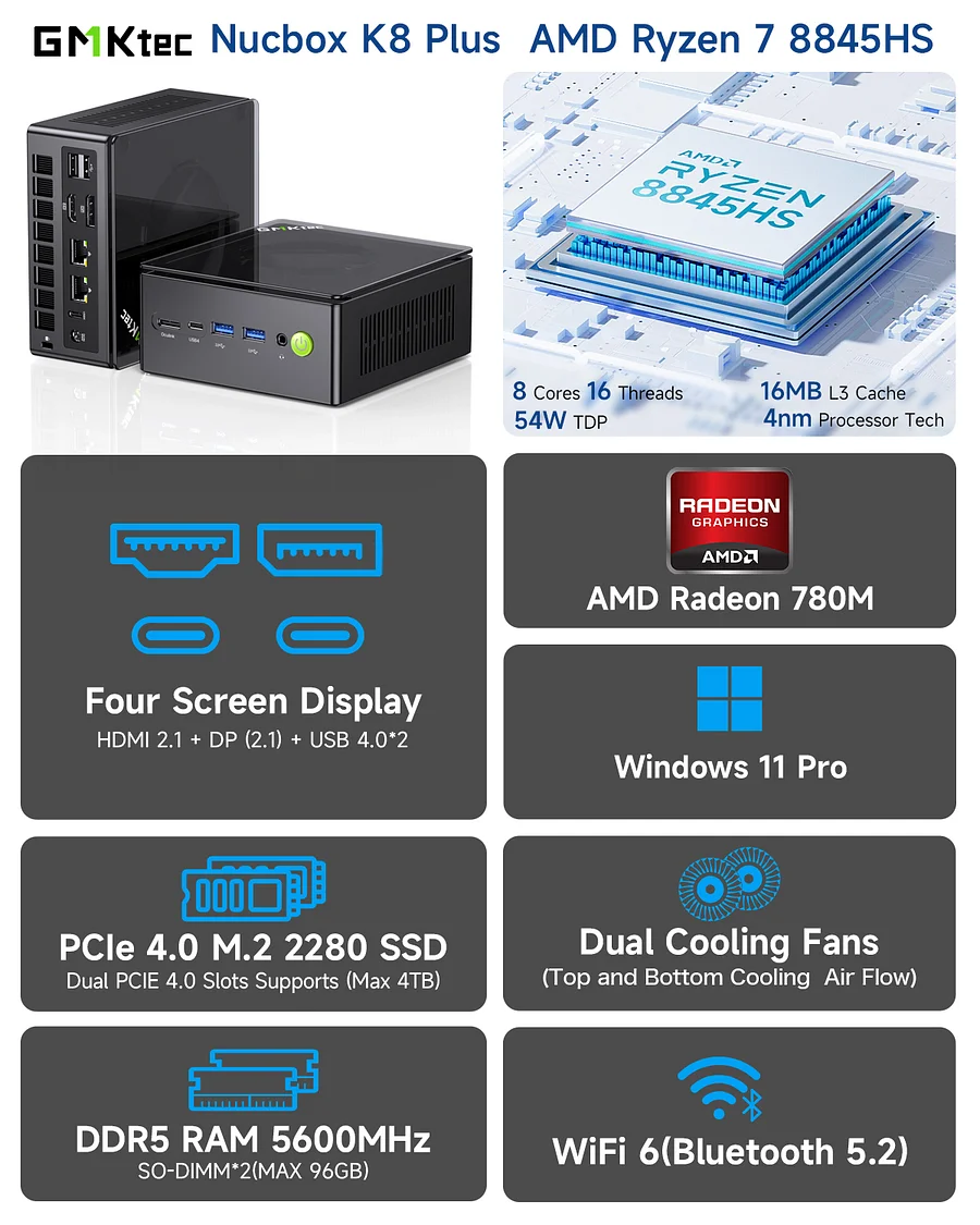 Máy tính mini AMD Ryzen 7 8845HS–NucBox K8 Plus là giải pháp phù hợp cho doanh nghiệp cần thiết bị bền bỉ, dễ triển khai và đảm bảo độ tin cậy trong quá trình vận hành. Nếu anh/chị đang cần nâng cấp hệ thống để giảm lỗi dừng máy và tăng năng suất, đây là lựa chọn đáng cân nhắc.