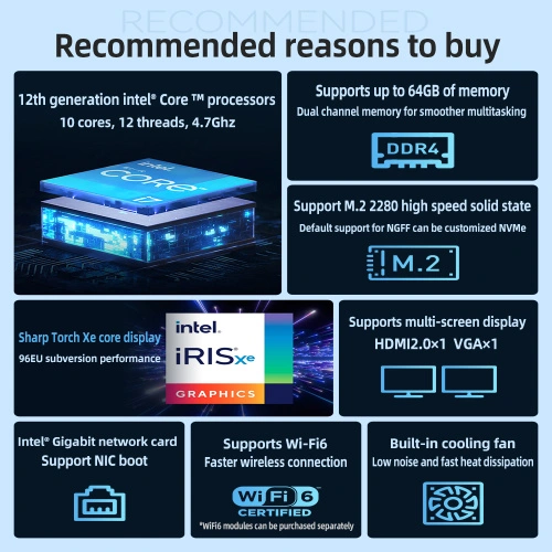 | Tên sản phẩm | Máy tính mini XCY Inte Core i7-1255U 64G DDR4 |