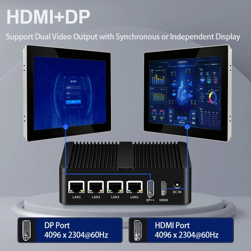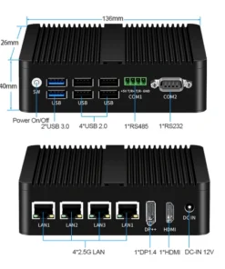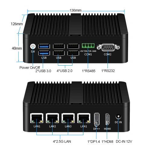 N100 Quạt Không Quạt Tường Lửa Mini PC RS485 Phoenix Terminal