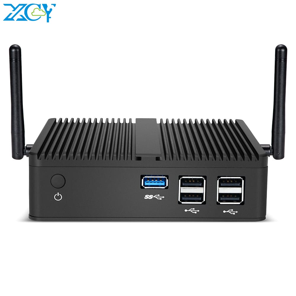 XCY Fanless Mini PC Thin Client Intel Celeron N2830 HDMI VGA Display Gigabit Ethernet 5x USB Support WiFi Windows 7/8/10 Linux